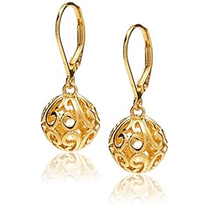 Plated Sterling Silver Filigree Ball Leverback Dangle Earrings