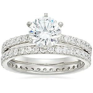 Platinum or Gold Plated Sterling Silver Round Ring Set made with Swarovski Zirconia