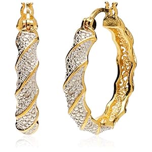 Plated Bronze Diamond Accent Twisted Hoop Earrings