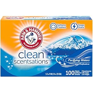 ARM & HAMMER Fabric Softener Sheets, 100 Sheets, Purifying Waters