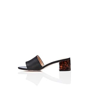 Amazon Brand – find. Women’s Block Heel Mule Open-Toe Sandals,Black (Black/ Tortoise Black/ Tortoise),US 5