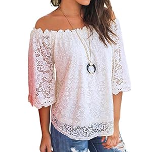 MIHOLL Women’s Lace Off Shoulder Tops Casual Loose Blouse Shirts