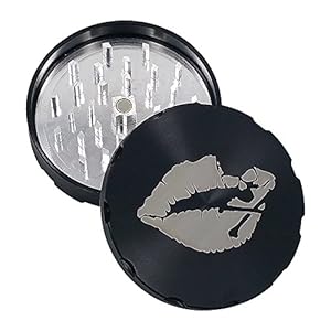 Death Kiss 2-Piece Metal Herb & Spice Grinder with Pollen Catcher and FREE Scraper – Large 2.5 Inch Size (Black)