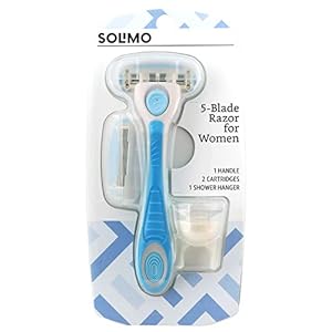 Amazon Brand – Solimo 5-Blade Razor for Women, Handle, 2 Cartridges & Shower Hanger (Cartridges fit Solimo Razor Handles…