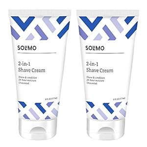 Amazon Brand – Solimo 2-In-1 Shave Cream, Fragrance Free, 6 Fl. Oz. (Pack Of 2)