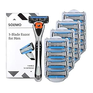 Amazon Brand – Solimo 5-Blade MotionSphere Razor for Men with Dual Lubrication and Precision Trimmer, Handle & 16…