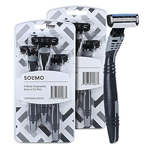 Amazon Brand – Solimo 3-Blade Disposable Razors for Men, 6 count (2 packs of 3)