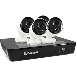 Swann 4 Channel 4 Camera Security System, Wired Surveillance 1080p HD DVR 1TB HDD, Audio Capture, Weatherproof, Color…
