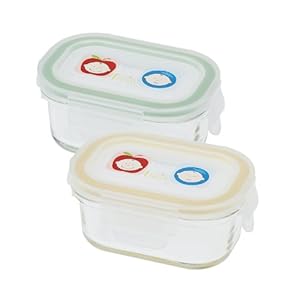 Innobaby Glass Rectangle Food Storage Container, 2 Pack, Yellow/Green