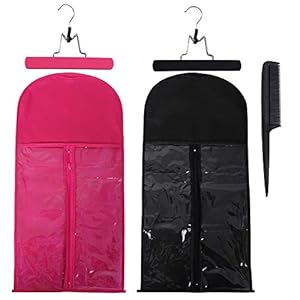 2 Pack Hair Extension Storage Bag with Hanger Holder Holder Dust Proof Portable Hair Extension Bag Carrier Case with…