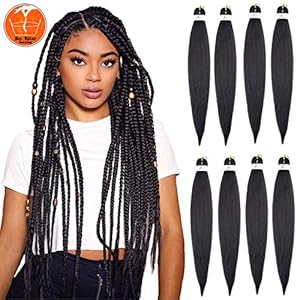 26″ 8 Packs Braiding Hair Pre Stretched Hair for Braiding Professional Kanekalon Synthetic Hair Hot Water Setting Yaki Texture Premium Fiber Crochet Synthetic Braiding Hair