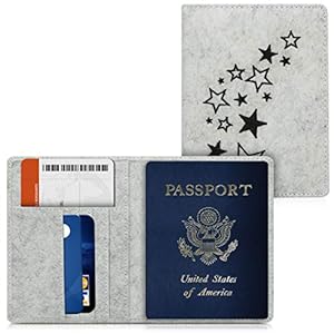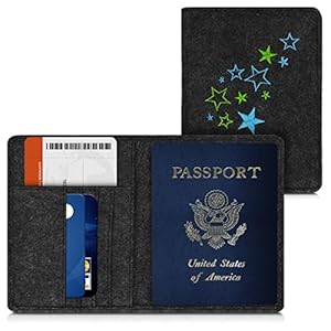 kwmobile Passport Holder with Card Slots – Felt Passport Cover Protective Case – Travel Wallet for Men & Women – Star…