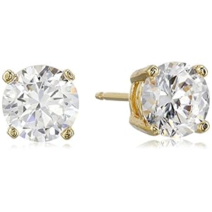 Amazon Essentials Plated Sterling Silver Cubic Zirconia Stud Earrings (Round & Princess)