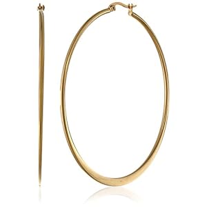Amazon Essentials Gold or Rhodium Plated Stainless Steel Flattened Hoop Earrings