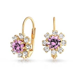 Delicate Floral Crystal 18K Gold Plated Brass Leverback Drop Flower Earrings For Women Teen More Birth Month Colors