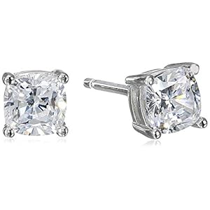 Platinum Plated Sterling Silver Cushion Cut Cubic Zirconia Stud Earrings
