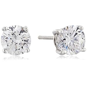 Platinum or Gold Plated Sterling Silver Round-Cut Stud Earrings made with Swarovski Zirconia