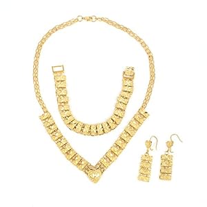 Dubai Heart Bracelet Necklace Earring Gold Jewelery Set Turkish Indian Moroccan Gold Jewelry