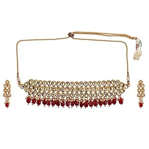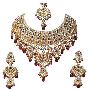 Efulgenz Indian Bollywood Premium Kundan Faux Ruby Pearl Bridal Wedding Choker Necklace Earrings Jewelry Set