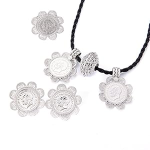 Ethiopian Coin Sets Jewelry Pendant Necklace Earrings Ring Silver Plated African Wedding Jewelery