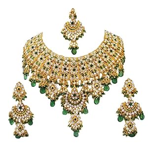 Touchstone “Contemporary Kundan Collection Indian Bollywood Look Bridal Jewelry Necklace in Antique Gold Tone for Women