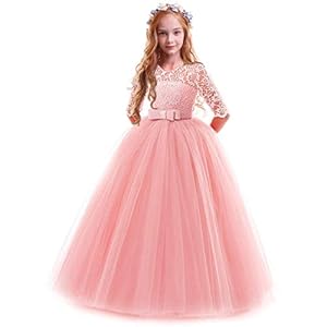 Big Girl Vintage Lace Junior Bridesmaid Dress Dance Ball Pageant Maxi Gown Floor Long for Party Wedding