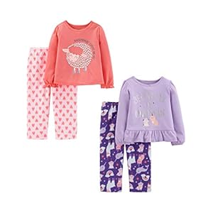 Simple Joys by Carter’s Little Kid and Toddler Girls’ 4-Piece Pajama Set (Cotton Top & Fleece Bottom)