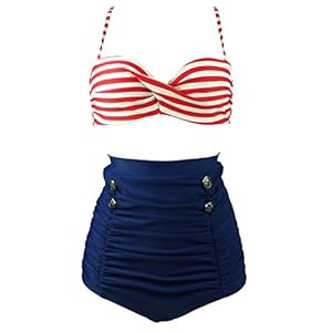 COCOSHIP Retro Polka Dot Twisted Front High Waisted Bikini Set Tie Belt Vintage Ruched Swimsuit(FBA)