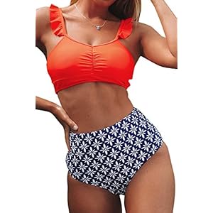 CUPSHE Women’s Tangerine Ruffled High Waisted Bikini