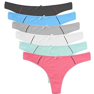 ELACUCOS 6 Pack Women’s Thongs Cotton Breathable Panties Bikini Underwear