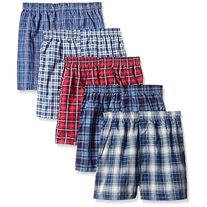 byFruit of the Loom Fruit Of The Loom Boys’ Woven Boxer, Exposed and Covered Waistband (Pack Of 5) (Assorted, Medium/10-12)