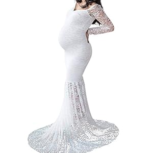 Pregnant Women Mermaid Long Maxi Off Shoulder Gown Photo Shoot Maternity V Neck Lace Dress Baby Shower