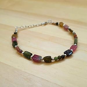 Green Tourmaline Bracelet for women Pink Round Beads Sterling Silver October Birthstone Jewelry
