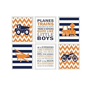 Transportation Nursery, Vehicle Art, Baby Boy Nursery, Planes Trains Trucks and Toys, Boy Rules, Boy Room Decor, Orange…