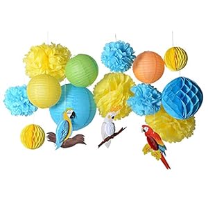 paper jazz 16pcs Parrot Tropical Birds Honeycomb Paper Pom Poms Lanterns for Wedding Birthday Summer Beach Seaside…