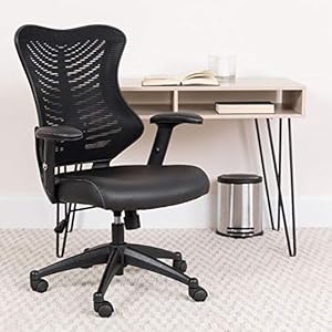 Flash Furniture High Back Black Leather and Mesh Swivel Task Office Chair with Arms