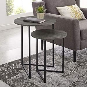 Walker Edison Furniture Company Modern Round Metal Base Nesting Set Side Accent Living Room Storage Small End Table, Set…