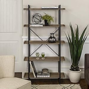Walker Edison 5 Shelf Industrial Wood Metal BookcaseTall Bookshelf Storage Home Office Grey/Brown68 Inch