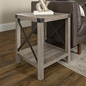 Walker Edison Furniture Company Rustic Modern Farmhouse Metal and Wood Square Side Accent Living Room Small End Table…
