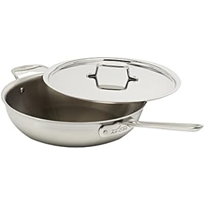 All-Clad BD55404 D5 Brushed 18/10 Stainless Steel 5-Ply Dishwasher Safe Week Night Pan Cookware, 4-Quart, Silver –