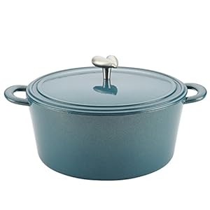 Ayesha Curry Cast Iron Enamel Casserole Dish/ Casserole Pan / Dutch Oven with Lid – 6 Quart, Twilight Teal