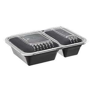 AmazonBasics 2 Compartment Meal Prep Containers – BPA Free, Microwave/Dishwasher/Freezer Safe, 32 ounces, 15-Pack
