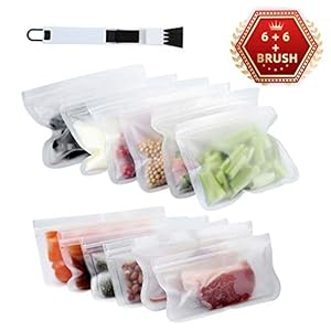 12 Pack Food Storage Bags, Reusable Sandwich Snack Bags for Kids, Leakproof Extra Thick, Enough to Hold Nuts, Vegetables, Fruits, Meat, Soup and Dry Food Items 2 Size (8.46x 7.1/8.46 x 4.7 Inch x 6)