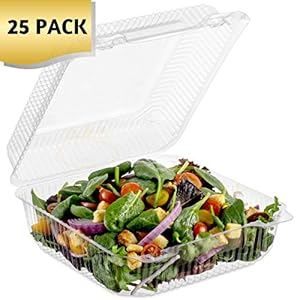 [25 PACK] OccasionWise Clear Plastic Food Container with Hinged Lid (approx. 8″x8″x3.5″)
