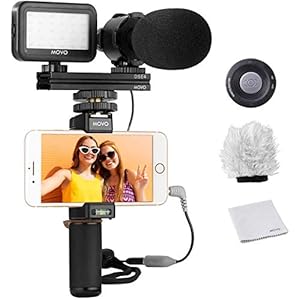 Movo Smartphone Video Rig Kit V7 with Grip Rig, Stereo Microphone, LED Light and Wireless Remote – YouTube, TIK Tok…