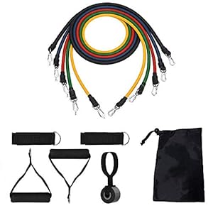 9Lucky Tech 11 Pcs Resistance Bands Set, Workout Bands, with Door Anchor Handles and Ankle Straps for Resistance Training, Home Workouts Gym Equipment