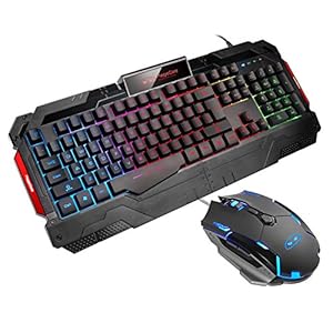 Gaming Keyboard, Qwertz Keyboard GK806 Rainbow LED Backlit Cable Keyboard 7 Button Optical Mouse USB Gaming Keyboard and…