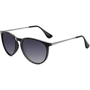WOWSUN Polarized Sunglasses for Women Vintage Retro Round Mirrored Lens (Black Frame Gradient Black Lens, 55)