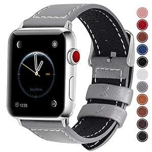 Fullmosa Compatible Apple Watch Band Leather 42mm 44mm 38mm 40mm for iWatch Series 5/4/3/2/1,42mm/44mm Grey + silver…