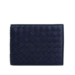 Bottega Veneta Men’s Blue/Black Leather Bi-fold Intrecciato Wallet 113993 8397